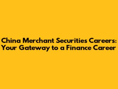 China Merchant Securities: Your Gateway To A Finance Career