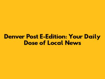 Staying updated on Denver local news is essential for anyone living in or interested in the Mile High City. The Denver Post E-Edition plays a crucial role in delivering timely and comprehensive coverage of local events, politics, sports, business, and culture. With the e-edition, you have access to breaking news, in-depth reports, and insightful analysis, all at your fingertips. From major city developments to local community happenings, the Denver Post keeps you informed on the issues that matter most.