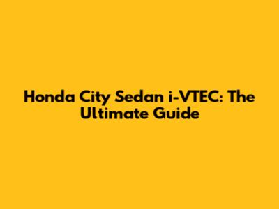 Honda City Sedan I-VTEC: The Ultimate Guide
