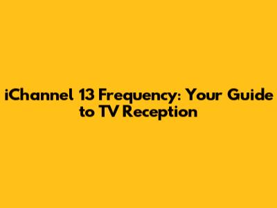 Understanding the iChannel 13 frequency is essential for a smooth and enjoyable TV viewing experience. Here's why you should care: