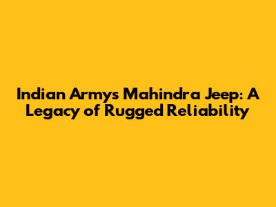 Indian Army's Mahindra Jeep: A Legacy Of Rugged Reliability