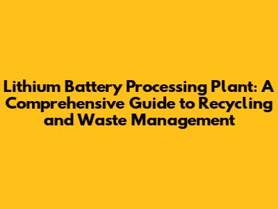 Lithium Battery Processing Plant: Recycling & Waste Management