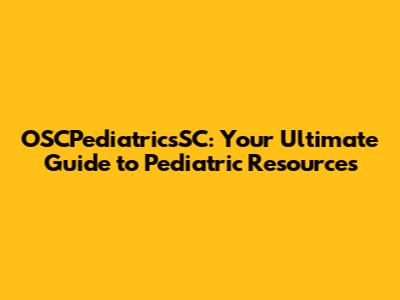 OSCPediatricsSC: Your Guide To Pediatric Resources