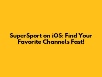 SuperSport On IOS: Find Your Favorite Channels Fast!