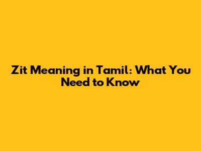Zit Meaning In Tamil: What You Need To Know